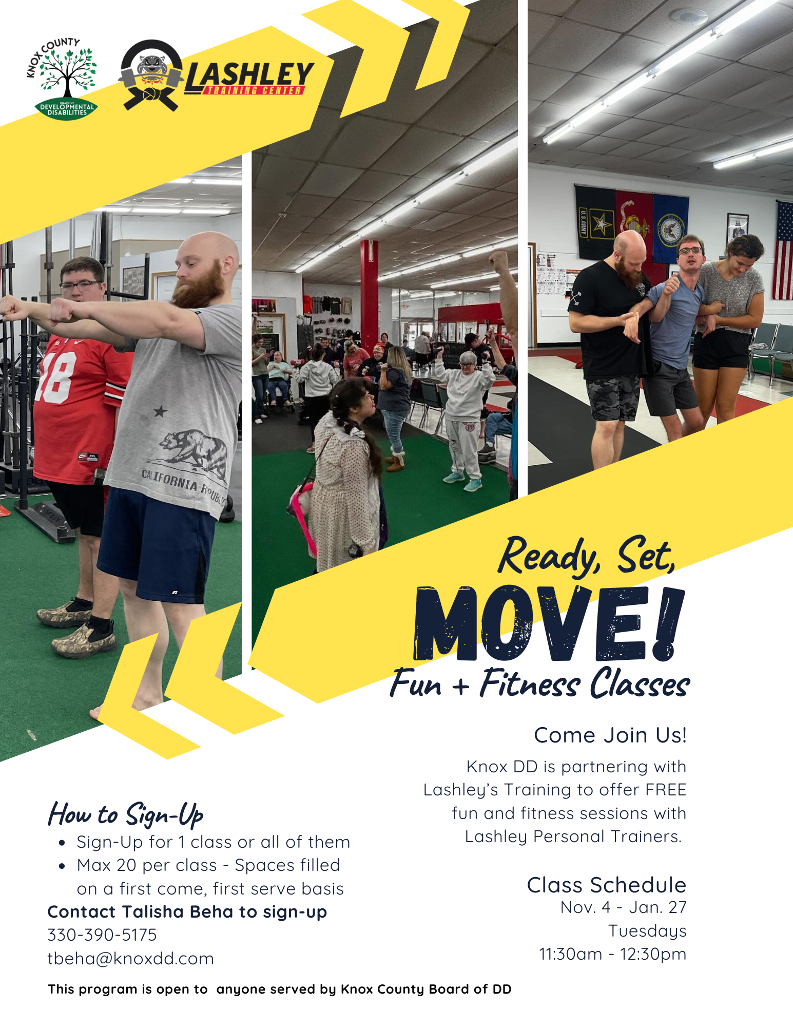 Knox DD is excited to share we are partnering with Lashley Training to offer weekly fun and fitness classes for anyone served by Knox DD.